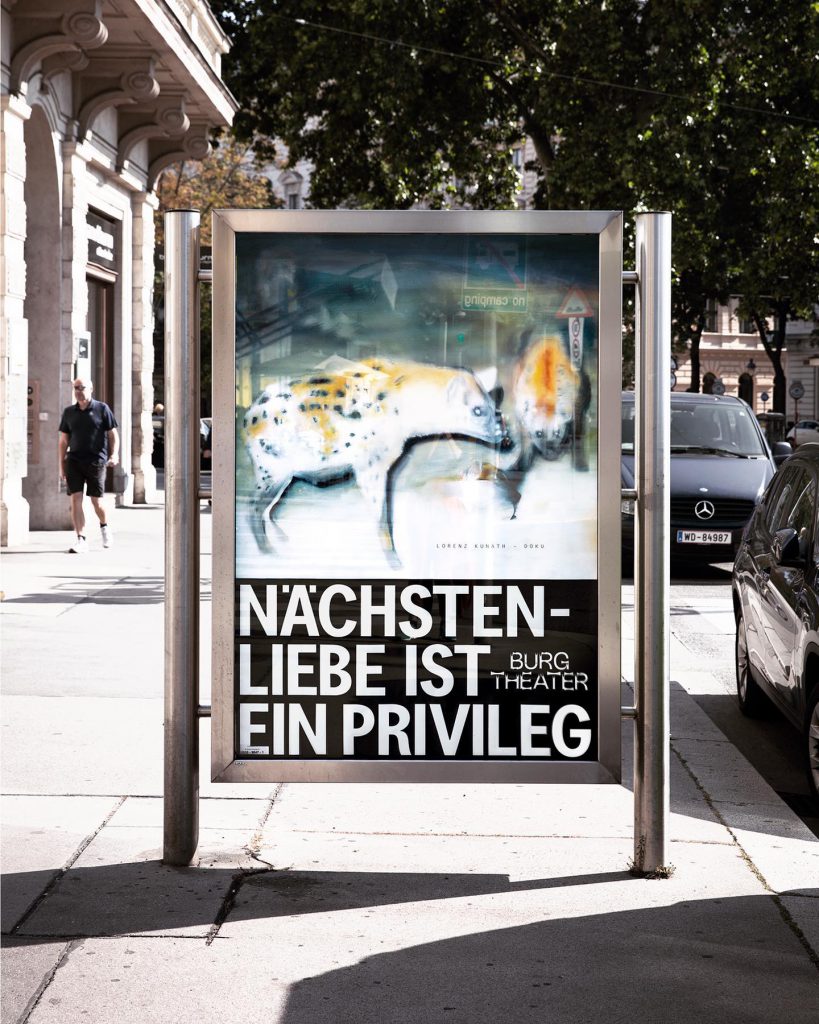 Burgtheater Spielzeit 2021/22 Publikation01. 06. 2021 Motiv: Erin SankeyFoto: Herburg Weiland Unter der Leitung von Prof. Judith Eisler haben Studierende der Klasse Malerei und Animationsfilm an der Universität für angewandte Kunst die Themen der Spielzeit 2021/22 des Burgtheater Wien mit ausgewählten Arbeiten künstlerisch kommentiert. Fotos (C) Herburg Weiland