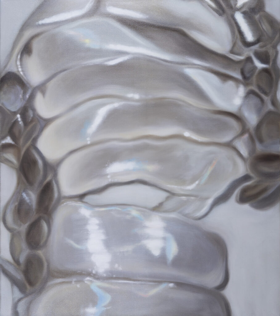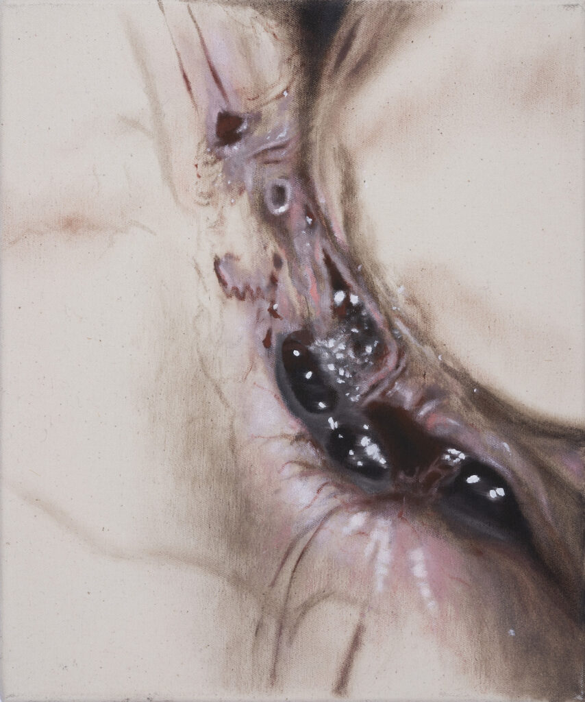 In my work images tend to get reduced to a point where they transform into a fragmented, indistinct painted surface. The perception of the human body, with its fragility, social context and relationship to nature, plays a vital role and appears in subtle traces – capturing the tension between sensibility and brutality.