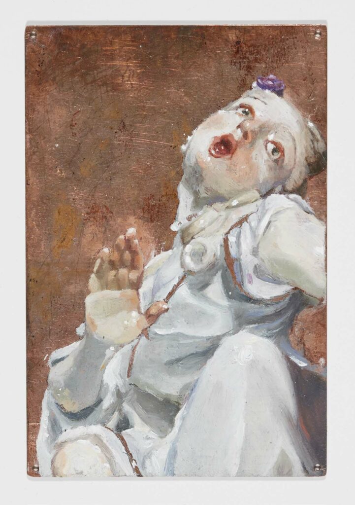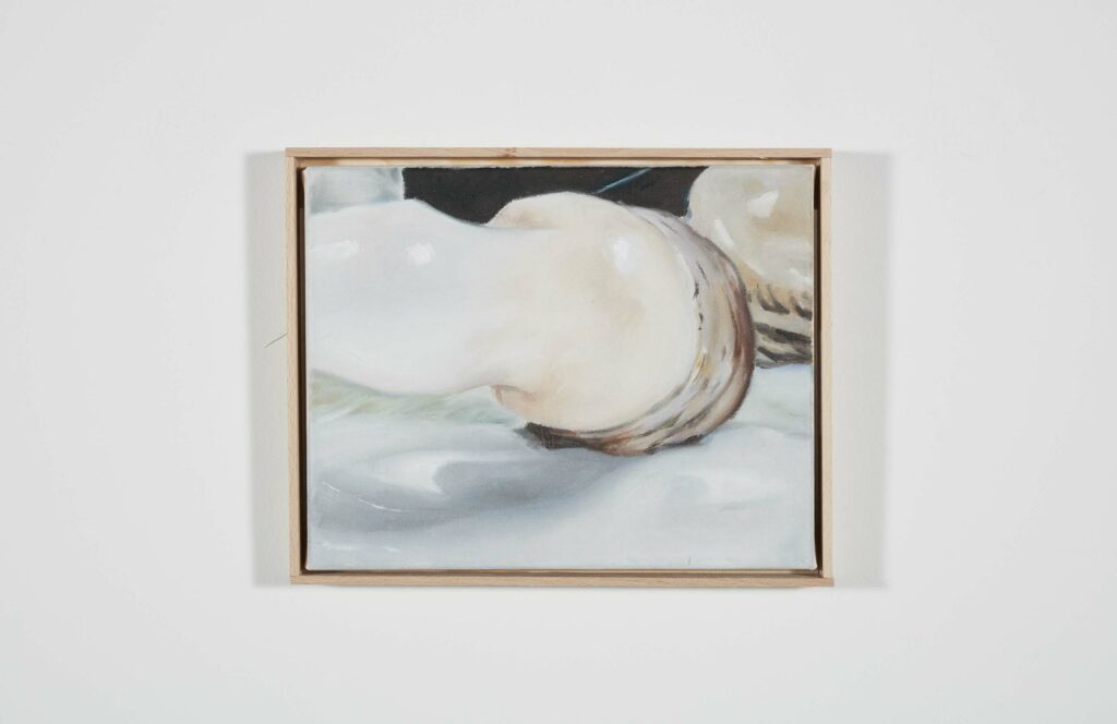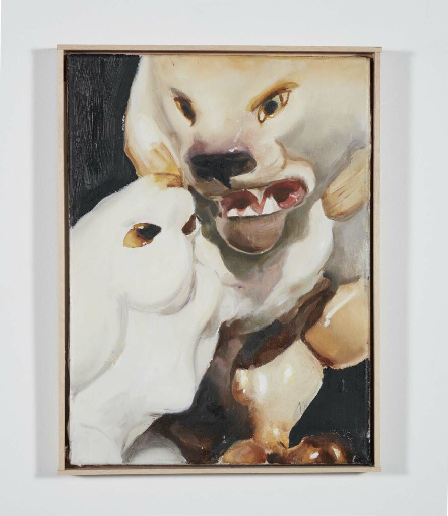Porcelain is strong, it can last forever if handled with care. When I hold an actual porcelain object, my hands will tremble slightly with anxiety. Regardless of its market value, I develop a fear of dropping it, breaking it and exposing the paradox of its strong yet fragile nature. Porcelain is almost a form of glass; it looks different under different skies, in different interiors. Its emotional significance will differ for each new person who possesses it. Esther Martens paints figures mantled in porcelain that she collects at flea markets and sources from auction websites, in an attempt to understand the fetishized presence and aura rooted rooted in the commodity. Through the process of translating the 3D object into the two-dimensional realm of painting, the memories imbued in the figure are lost and recalibrated for her into a new emotional value.