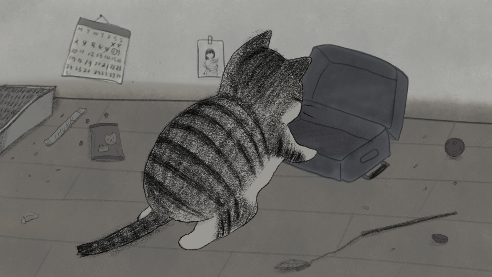 My film tells a story about loneliness, distance, and the desire to see a loved one after a long absence. When I went to Japan for a semester abroad, I was not able to take my cat with me. It was the second time in my life that I traveled alone to an unknown place. I imagined that my cat missed me as much as I missed him.