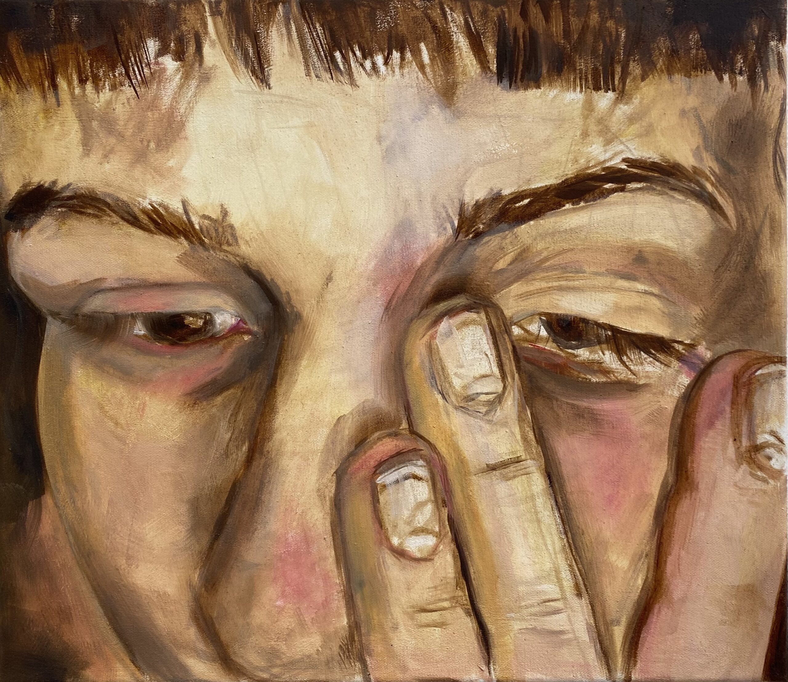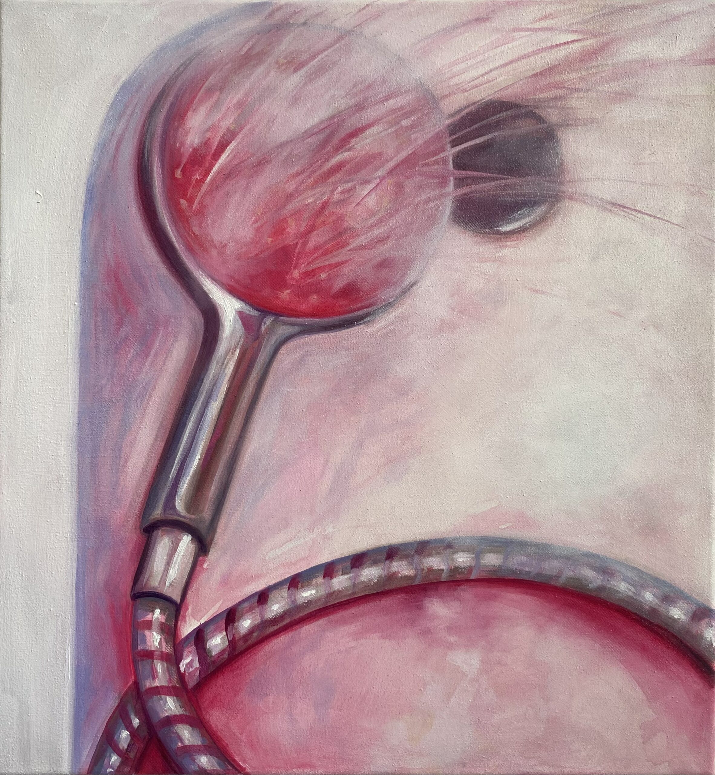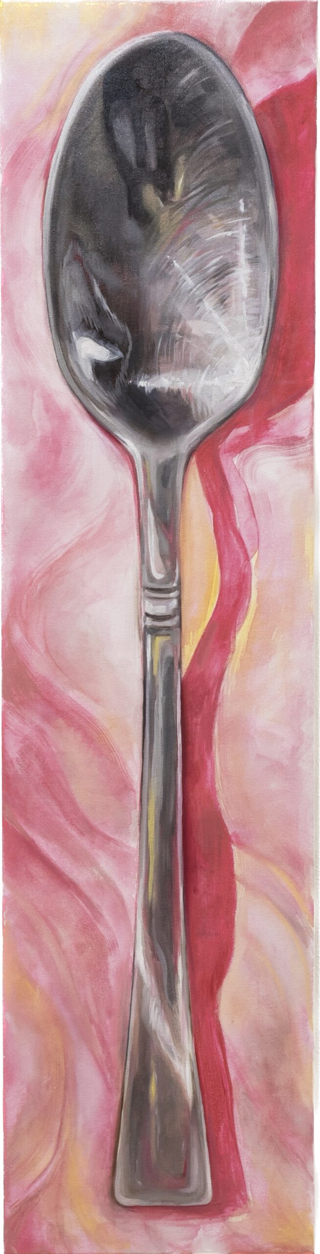 In her figurative, mostly oil paintings, she explores themes ranging from mundane structures to impactful experiences often rooted in everyday situations and spaces, like within one’s own four walls, with a touch of surrealism. Concepts are often inspired by found compositions and collected thoughts, dreams or even conversations only heard in passing, quickly photographed or written down and reinterpreted on paper or canvas.