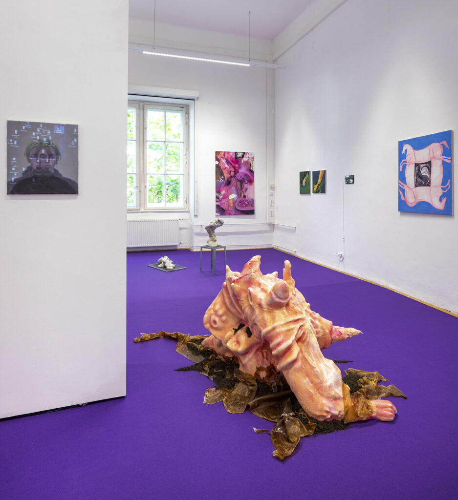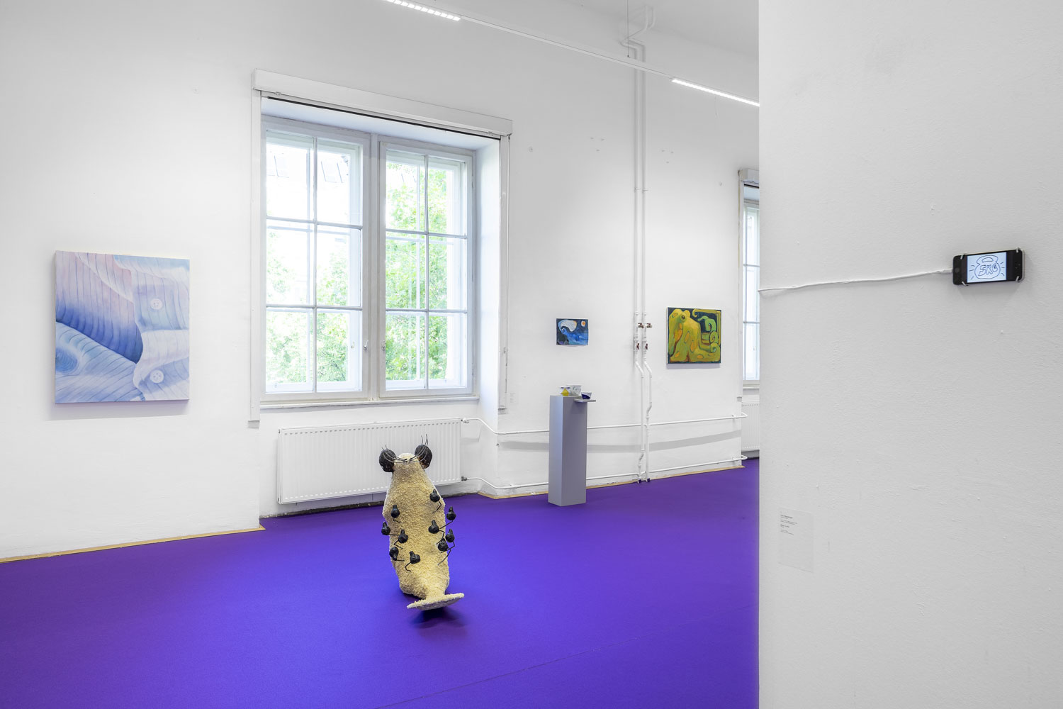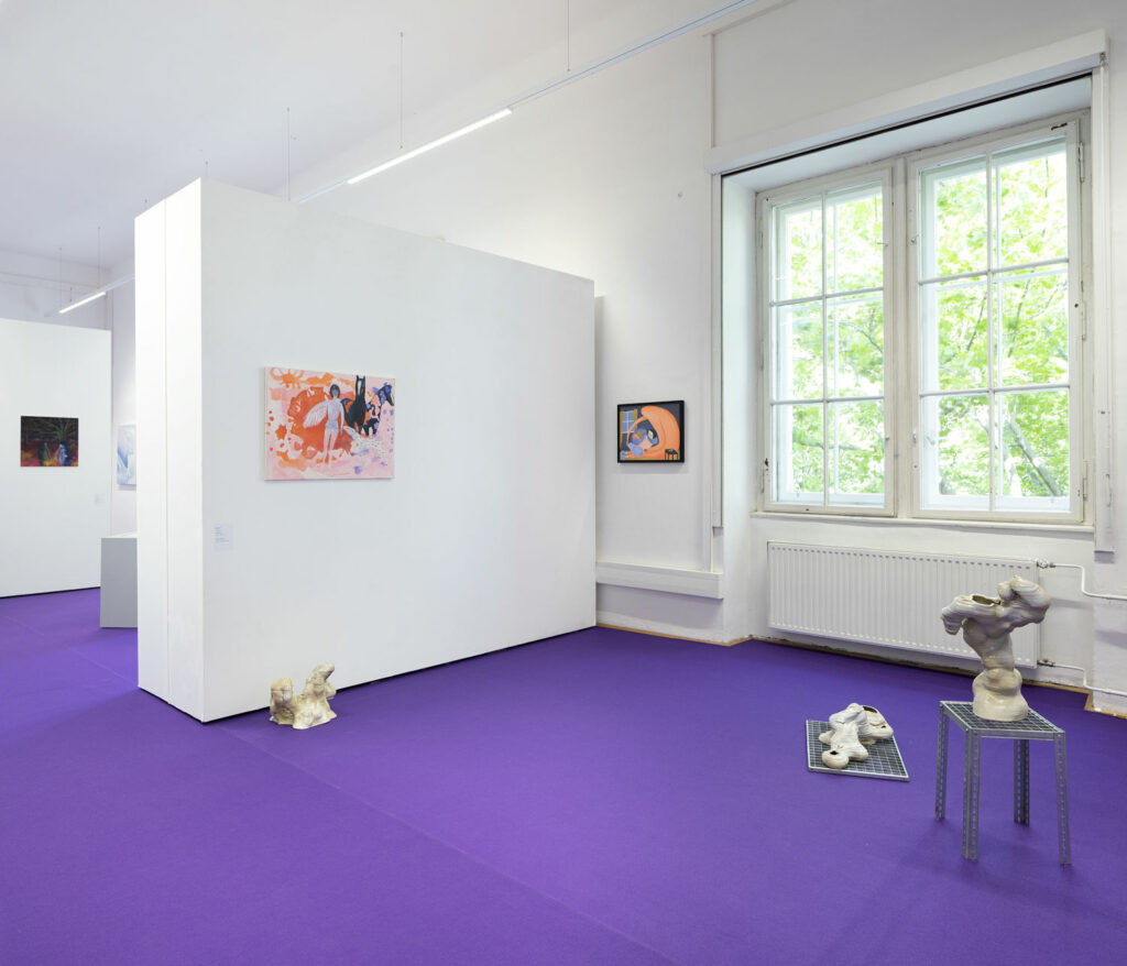 Unter dem Titel “Reality and other impossible things” versammelt Kuratorin Nora Mayr zarte und laute, humorvolle und imaginäre Wirklichkeitswelten der Studierenden der Klasse für Malerei und Animationsfilm. In einer spielerischen Anordnung aus Animation, Skulptur und Malerei verweben sich Erzählungen von fantastischen Tiergestalten, entblößter Liebe und verworfenen Granatäpfeln.