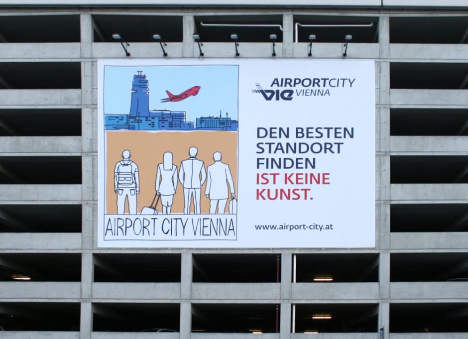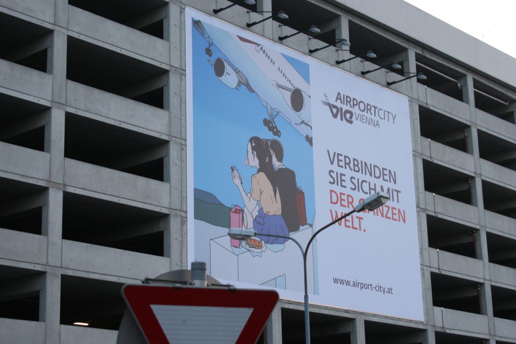 Studierende der Klasse gestalteten für die Vienna Airport City eine Edition von Plakatsujets und Postkarten. Im Rahmen eines Wettbewerbs wurden mehrere Preise vergeben, abgebildet die drei Sieger-Entwürfe von Lucia de Quiqueran-Beaujeu, Mercedes Geissberger und Silvia Knödelstorfer.